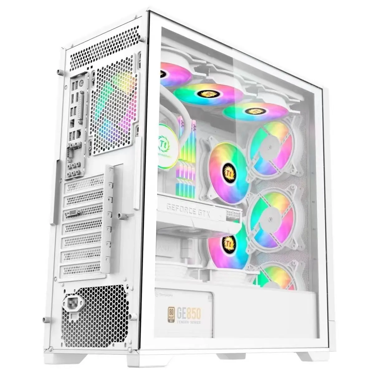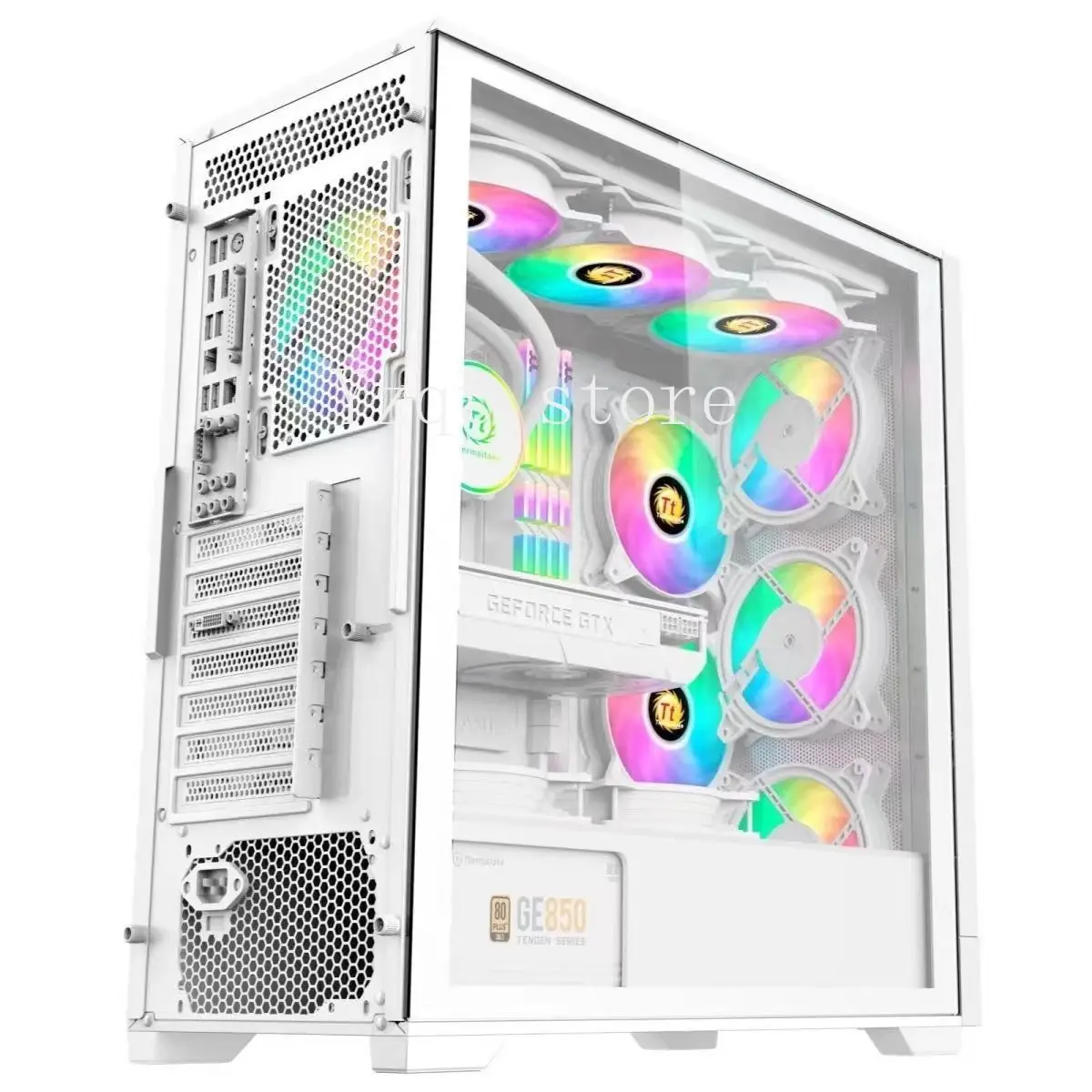 Desktop PC case with full-side transparent window, EATX dual RGB lighting, and high-performance liquid cooling for gaming (Copy)